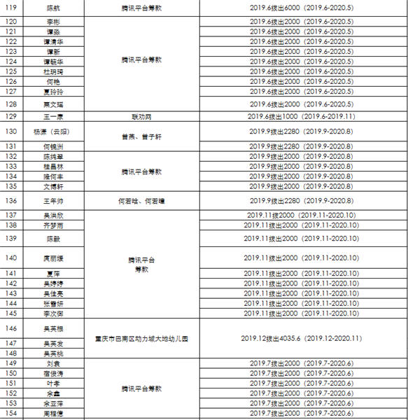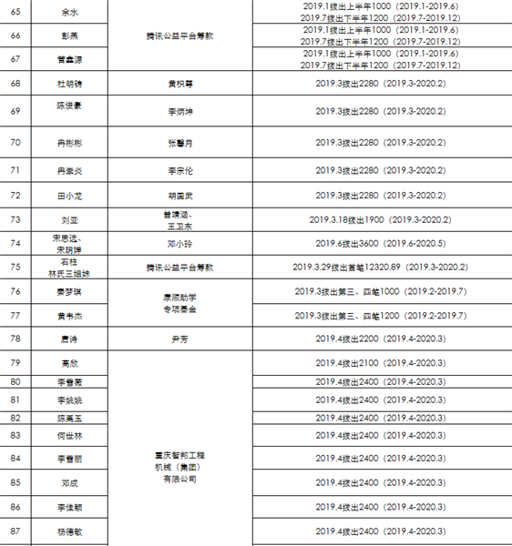 2019年爱心护航·助学项目资助公示