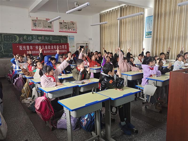 “阳光童年”预防儿童欺凌和暴力项目在重庆市合川区、梁平区、黔江区开展活动,为儿童送去防欺凌和暴力知识,增强儿童安全意识,教育和引导儿童不参与欺凌和暴力行为。