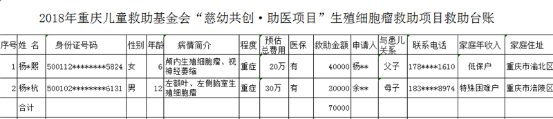2018年生殖细胞瘤救助名单
