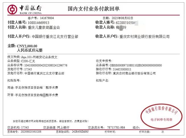 开户单位:重庆儿童救助基金会 | 开户银行:中国银行重庆江北支行 银行账号:1088 1466 9913