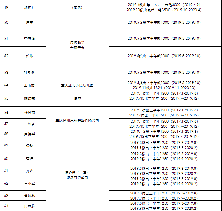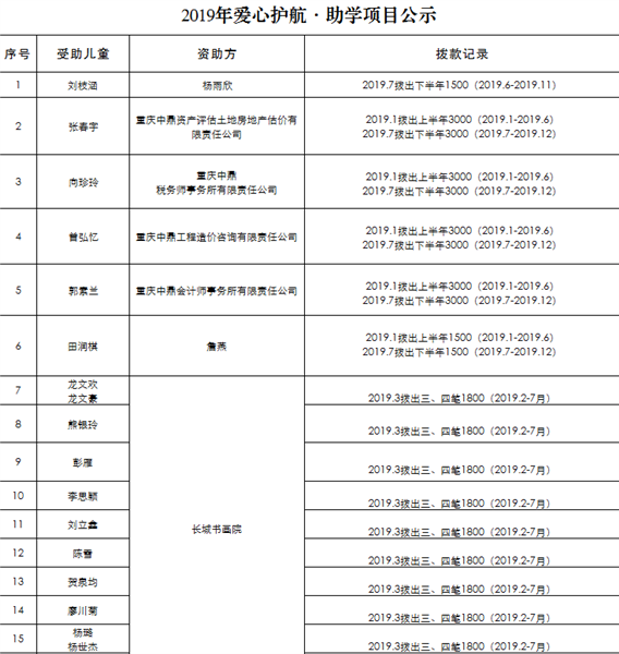 2019年爱心护航·助学项目资助公示