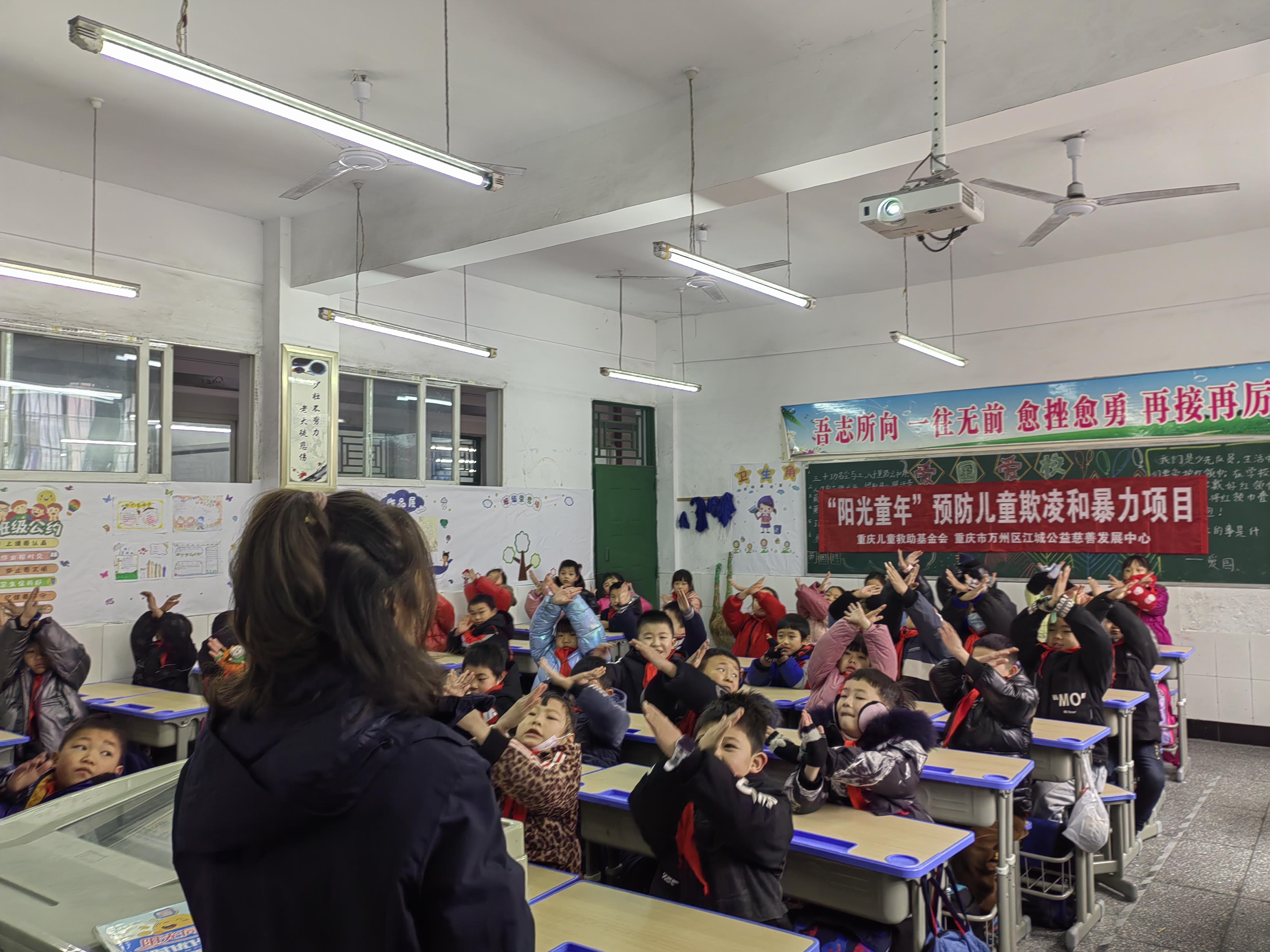 第四届“阳光童年”预防儿童欺凌和暴力项目自启动以来陆续在重庆潼南区、忠县、巴南区、万州区等地开展活动。通过前期培训、考核,种子老师们走进校园为孩子们普及防欺凌知识,教导孩子们要养成好习惯,不做欺负他人的“小霸王”,同时也要防止被欺凌,做文明的好孩子。