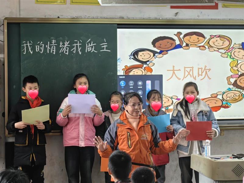 课堂上,种子老师运用巧妙的语言、生动有趣的互动,寓教于乐的方式逐步引导孩子们认识到什么是情绪,如何合理地调节情绪,怎么样去排解和释放不良情绪。在种子老师的带领下,课堂气氛活跃,同学们踊跃参与各个环节。